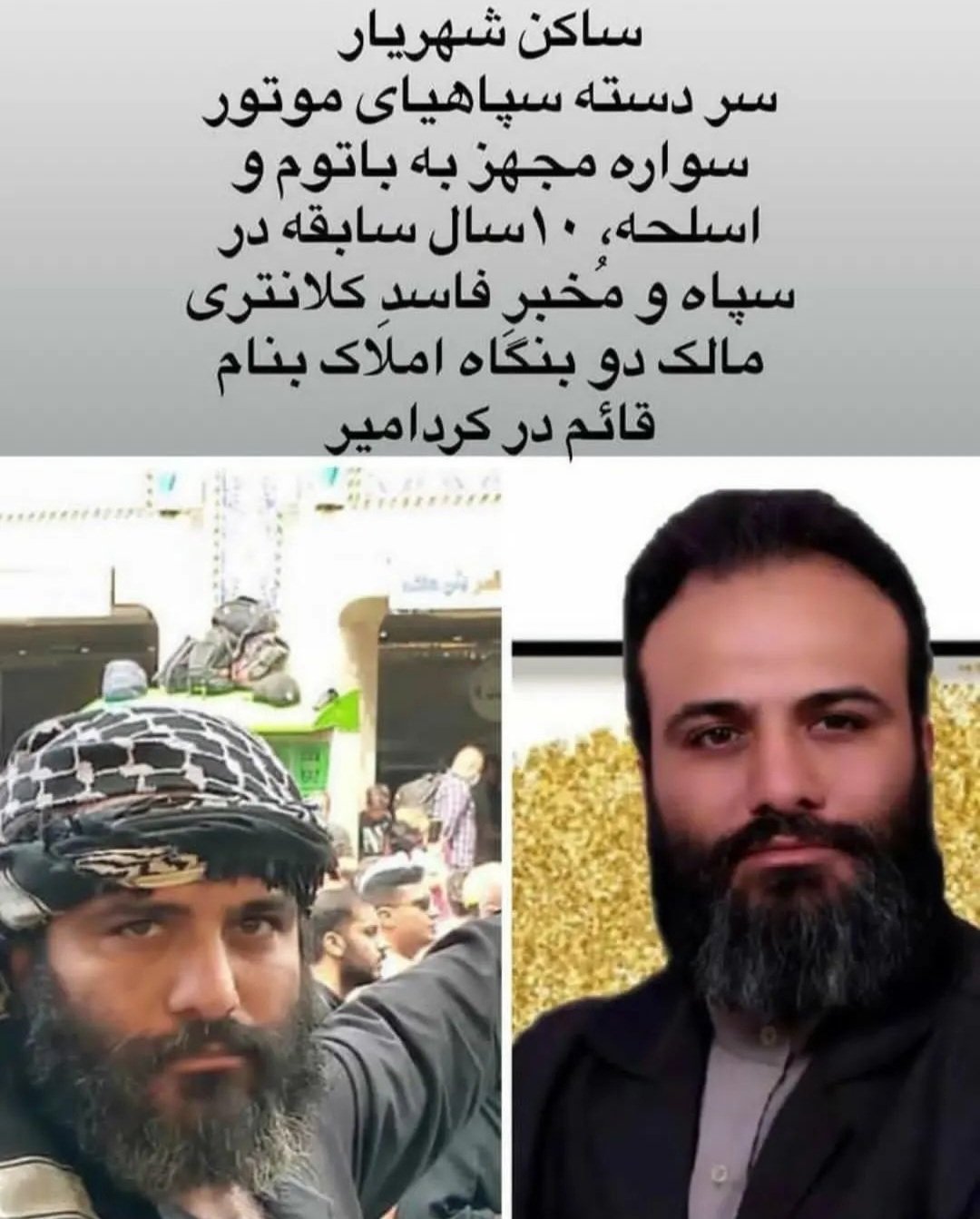 آدرس محل کار: شهریار سر دسته سپاهی موتور سوار