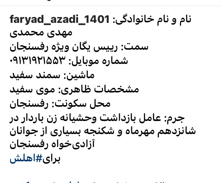 مهدی محمدی (سرکوبگر زن باردار در رفسنجان)
